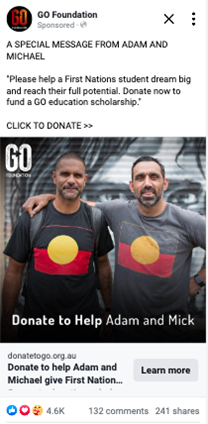Every scholarship GO Foundation funds changes the life of a First Nations student. But to reach more students, they needed to reach more supporters. And that’s where we came in – bringing creativity and hands-on support to strategically and sustainably grow their digital fundraising.
